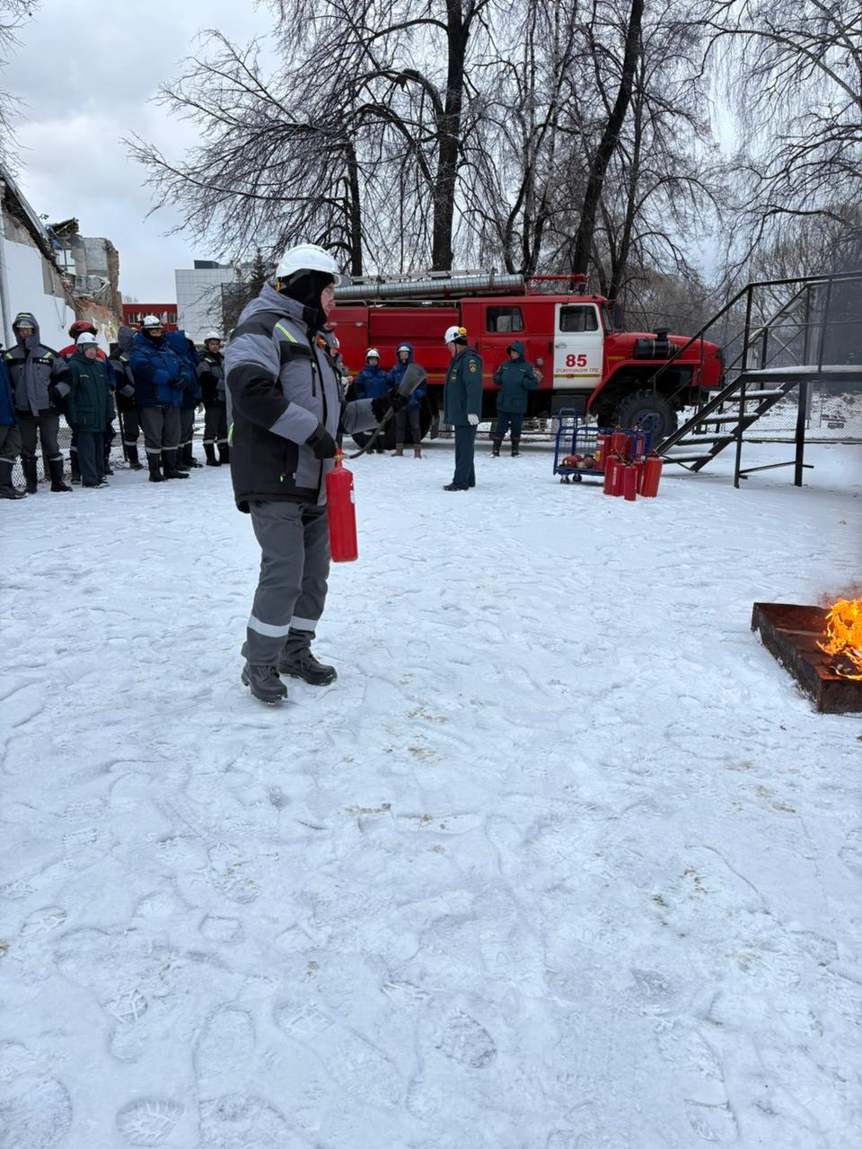 Работа на пожарном полигоне — это не только отработка слаженных действий и физическая подготовка, но и строгое соблюдение правил безопасности. Одним из ключевых элементов подготовки сотрудников является инструктаж по использованию пожарных огнетушителей. Такой инструктаж не просто формальность — он может спасти жизнь при возникновении чрезвычайной ситуации. 24 ноября 2025 года начальник отделения профилактики пожаров 85 ПЧ Гизятов А.М. провел инструктаж с отработкой практических навыков для сотрудников Среднеуральской ГРЭС.